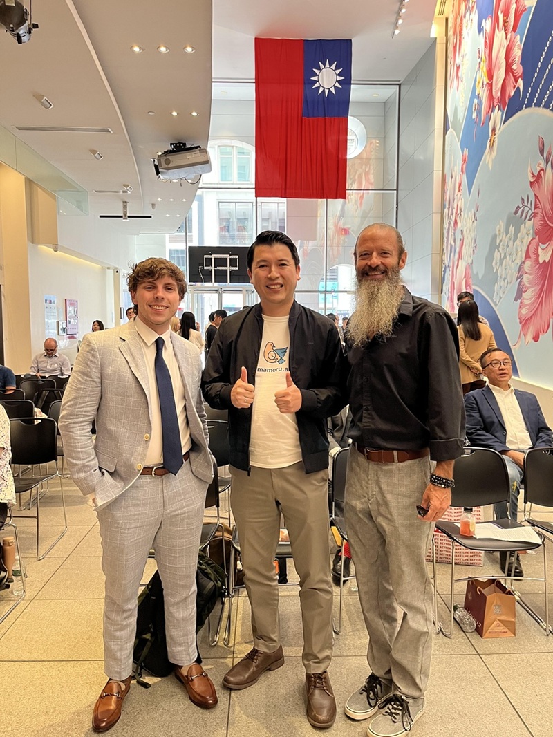 圖三說明:超智諮詢創辦人陳弘益博士(中)與美國合作夥伴於台灣駐紐約經濟文化辦事處合影交流。(高雄市政府青年局提供)